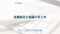結晶は、多数の構成が結合した結晶で、硬度が高低、融点が高低。電気を通す?が、物質は電気を通す。物質、物質などがある。