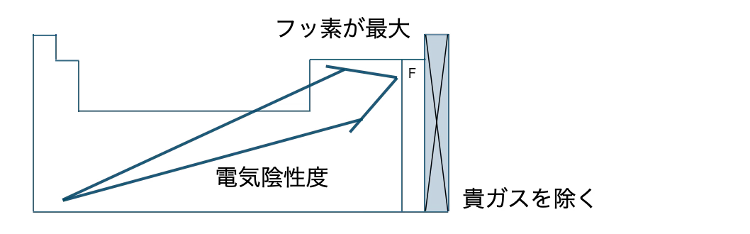 共有結合している原子間で、用語 を引きつける強さを数値にしたものを 用語 という。貴ガスを除いた周期表の右上ほど強くなり、元素 が最大。