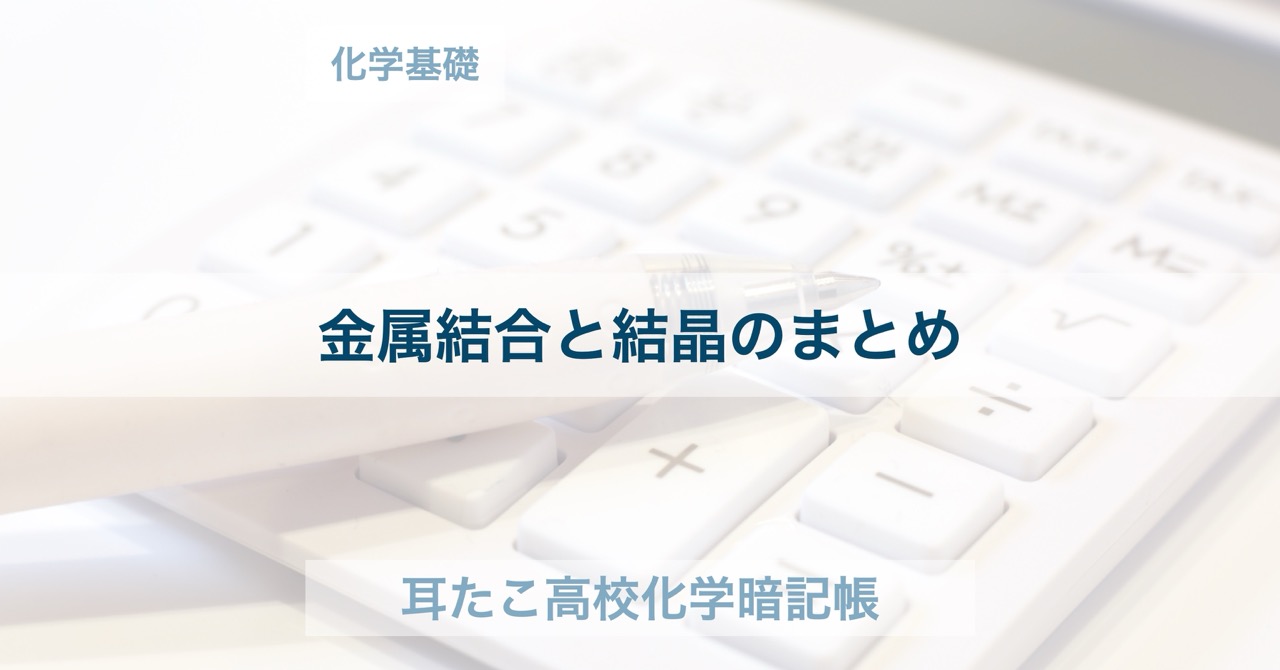 - 耳たこ化学基礎「金属結合と結晶のまとめ」の暗記ページです。