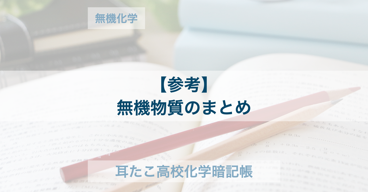 - 耳たこ無機化学「【参考】無機物質のまとめ」の暗記ページです。